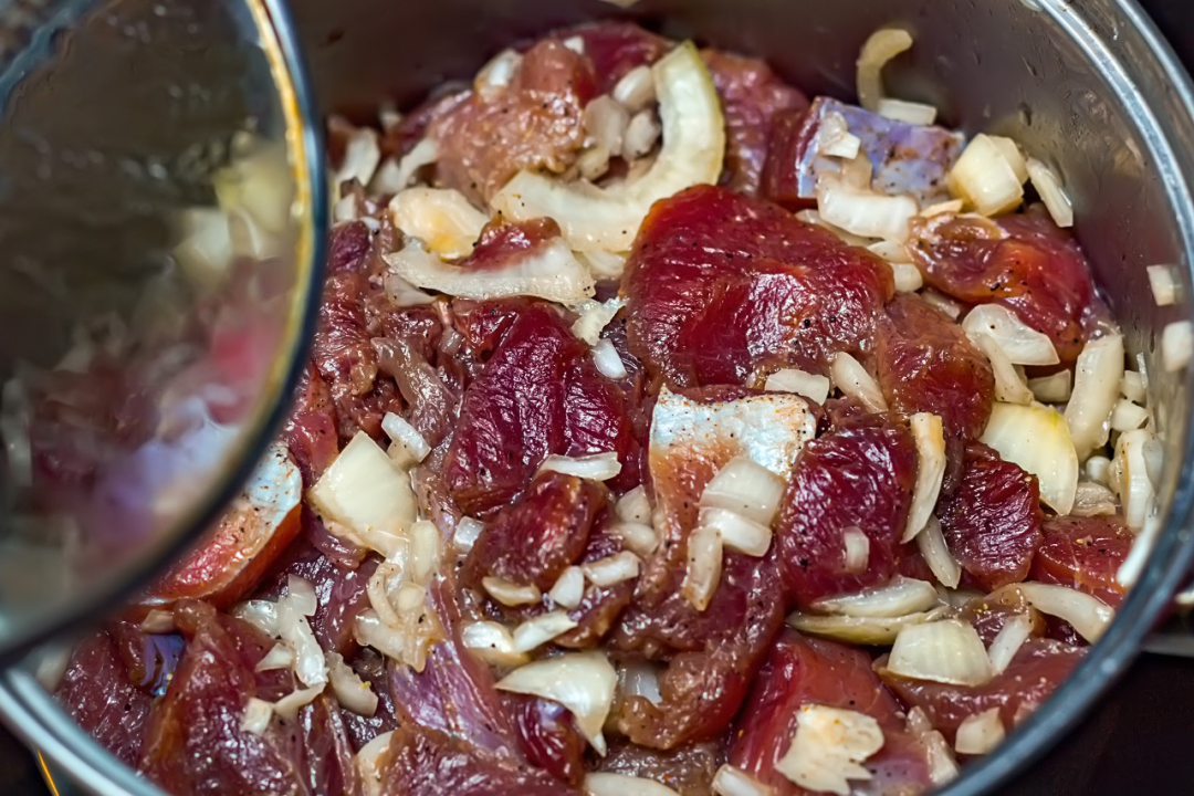 构成肉类的蛋白质,存在一个“等电点”,可以简单理解成在这个 pH 值的条件下,蛋白质能够保持结构稳定,用小苏打腌肉的时候,肉类所处环境的 pH 值会增大(偏碱性),蛋白质不再保持稳定,溶解度会增大,肉类的完整性受到影响,变得更加柔软。
