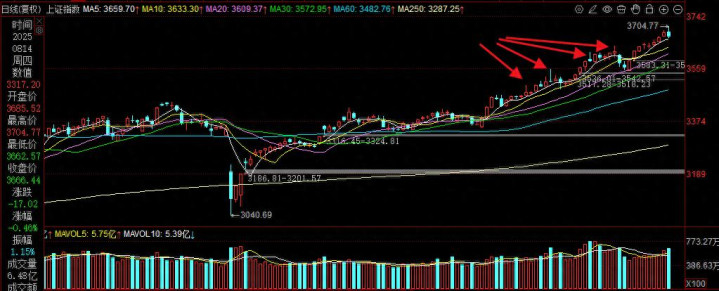 之前预判第5个“仙人指路”将在前高3674点附近出现,结果市场比想象中强势。